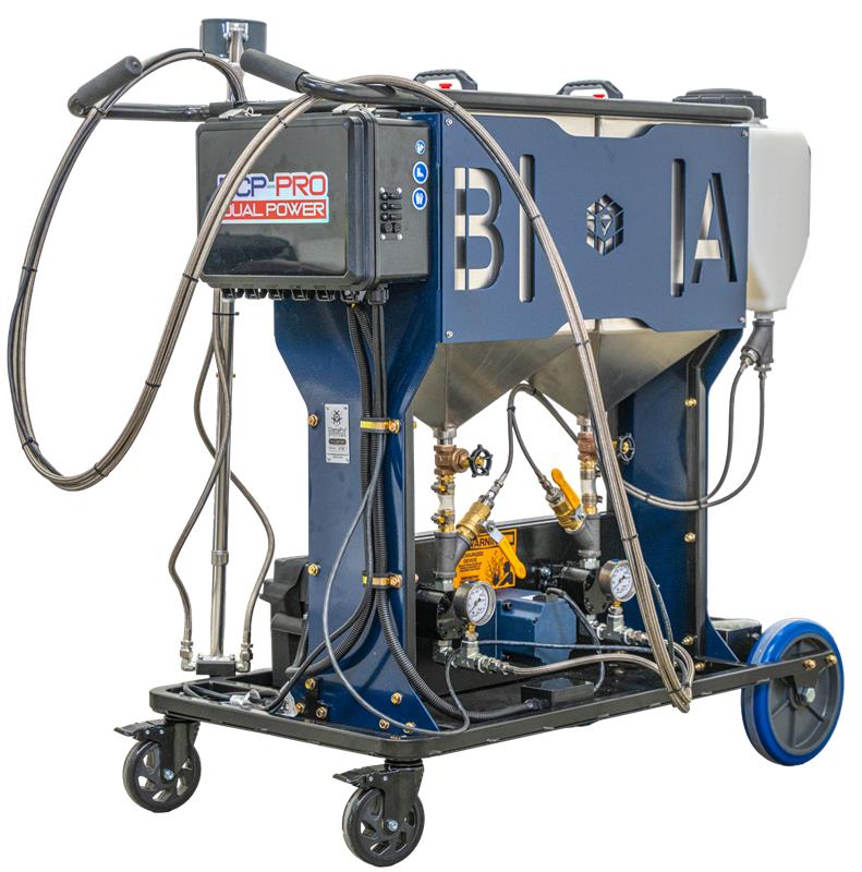 - Dual ten-gallon molded plastic tanks, offer extended operational time before requiring a refill. Clean-up is made effortless with the DCP-Pro’s built in integrated washout system with a three gallon cleaning fluid tank.