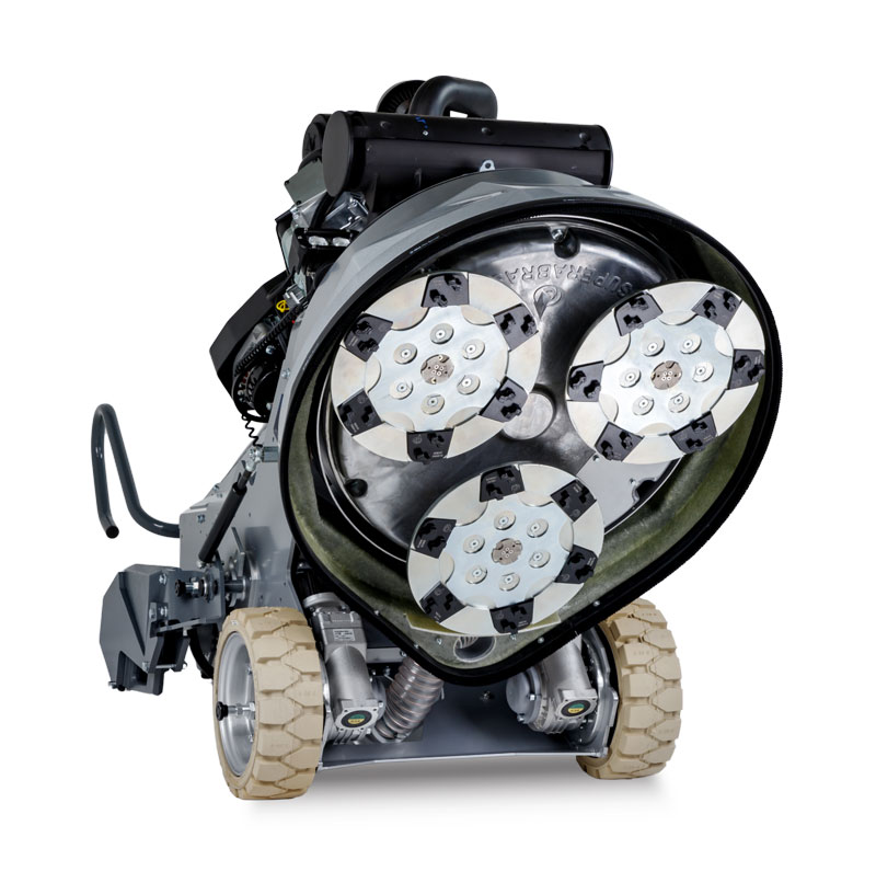 - Three 13-inch grinding heads with left rotation (use the blue pcd and carbide scrapers).